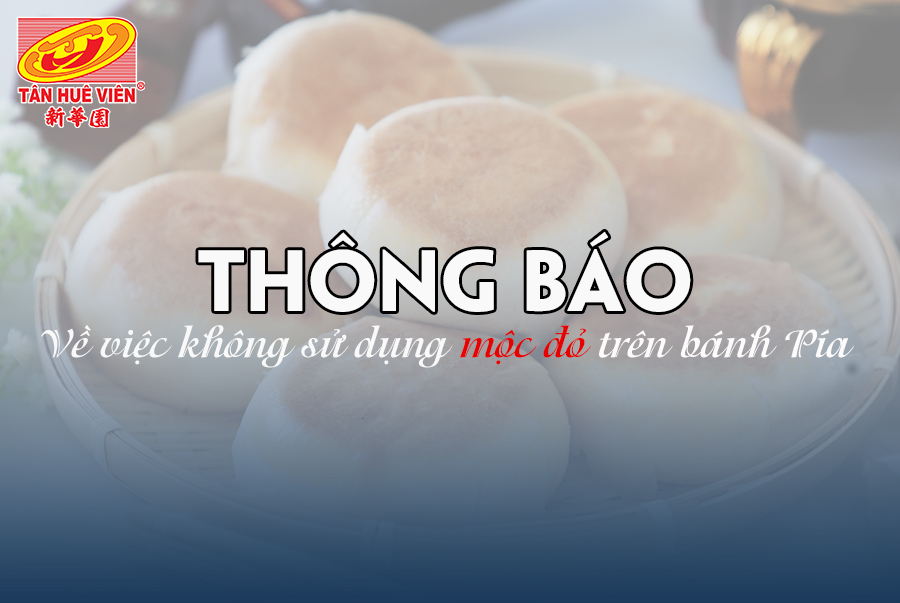 Từ ngày 22/8/2020, bánh Pía Tân Huê Viên không sử dụng mộc đỏ trên bề mặt bánh. Tân Huê Viên trân trọng thông báo đến Quý Khách hàng và Đối tác để nắm rõ thông tin.