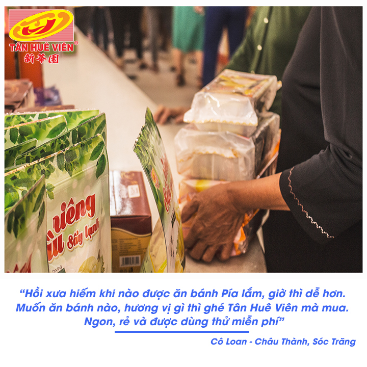 Sản phẩm Tân Huê Viên đi vào lòng của khách hàng thật bình dị: là mua thật nhiều bánh gửi con cháu ở thành phố để tụi nó đỡ nhớ nhà, là tự tay chọn bánh thật ngon để làm quà biếu ông bà cha mẹ, là mua nhiều loại bánh kẹo để dành ăn từ từ vì hiếm khi được lên tỉnh chơi,...