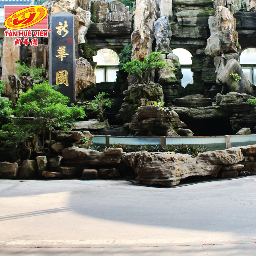 Nếu bạn đi từ cổng 1 Điểm du lịch Tân Huê Viên sẽ bắt gặp núi nhân tạo ngay tại cua quẹo, phía bên trái, dễ hiểu hơn nơi này có vị trí đối diện phòng kinh doanh.