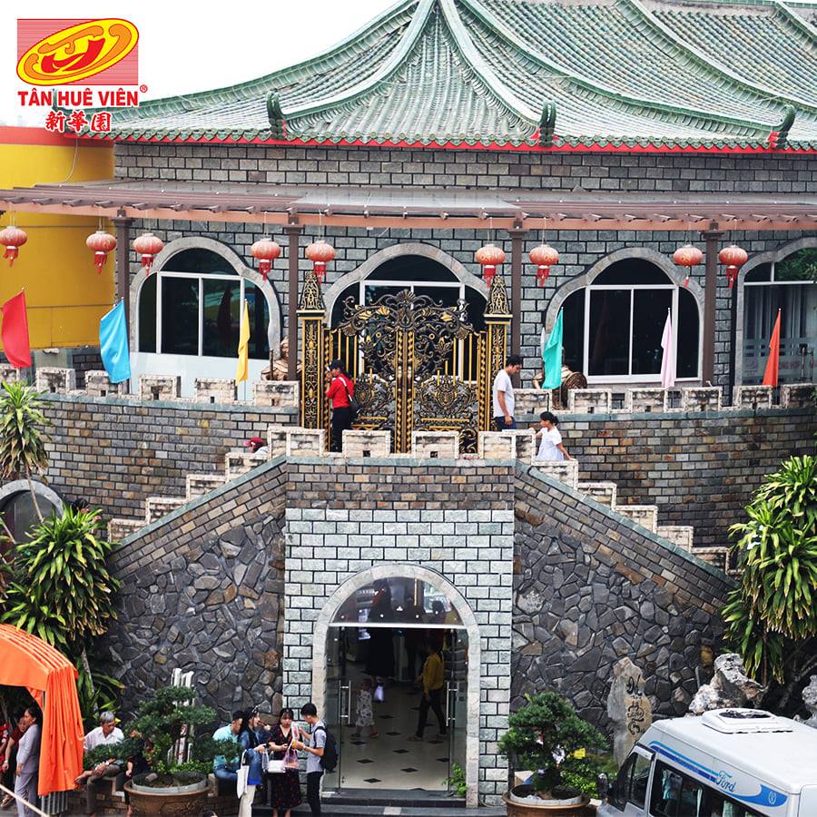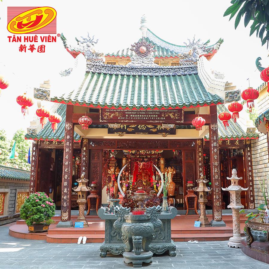 Khách hàng đến Tân Huê Viên thường chiêm bái và chụp ảnh lưu niệm tại đây. Không gian phủ thờ luôn được bao phủ bởi bóng mát cây xanh và mang đến sự bình yên, an lành trong lòng du khách.