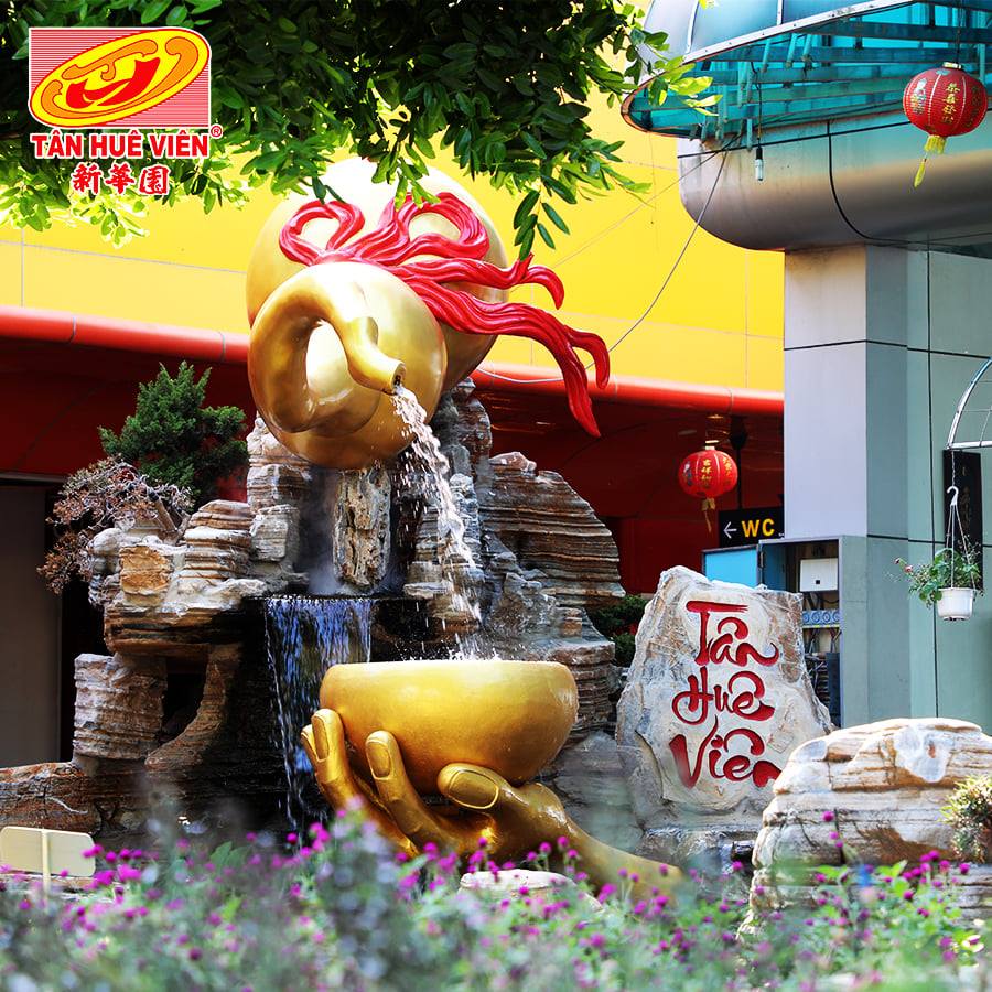 Khách hàng đến Tân Huê Viên thường chiêm bái và chụp ảnh lưu niệm tại đây. Không gian phủ thờ luôn được bao phủ bởi bóng mát cây xanh và mang đến sự bình yên, an lành trong lòng du khách.