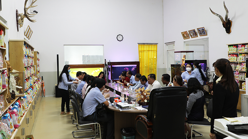 Sau buổi họp mặt, đoàn công tác đã đến tham quan dây chuyền sản xuất bánh Pía và thưởng thức bánh Pía nóng tại xưởng.