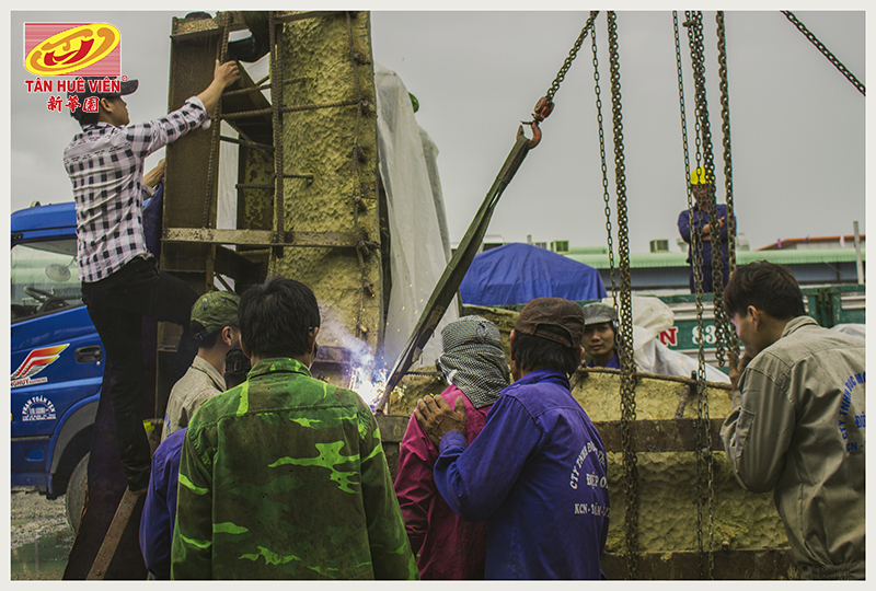 Sáng 05/08, tượng Phật Dược Sư được vận chuyển về công ty Tân Huê Viên. chuẩn bị cho nghi lễ Đúc tượng đồng diễn ra vào lúc 14h00 ngày 14/08 (nhằm 14/07 AL) sắp tới.