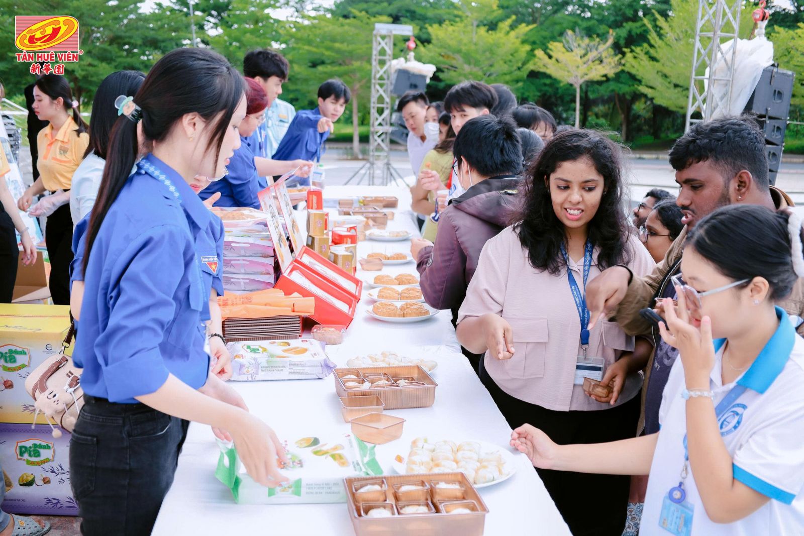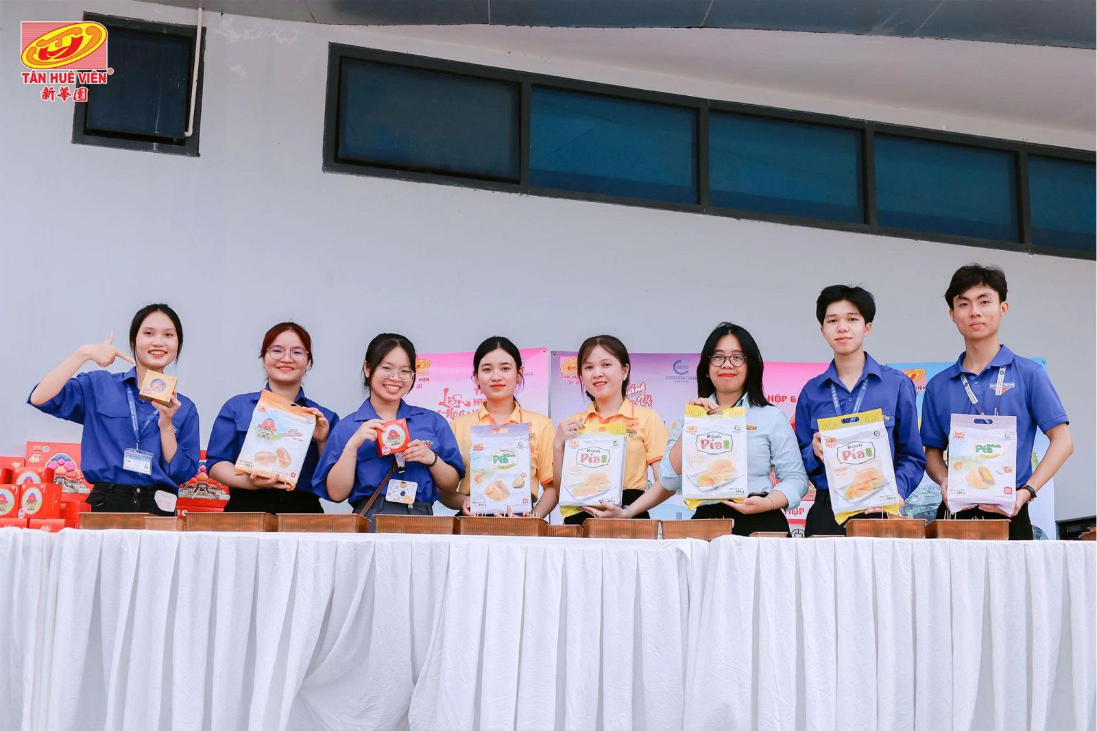 Trong chương trình, Tân Huê Viên vinh dự đồng hành, mang đến những sản phẩm đặc trưng như bánh Pía chay, bánh Kim Sa, bánh Trung Thu… Gian hàng nhanh chóng thu hút sự quan tâm của đông đảo sinh viên. Ai cũng háo hức thưởng thức hương vị thơm ngon, đậm chất đặc sản Sóc Trăng (cũ) và chia sẻ cảm nhận đầy hứng khởi.