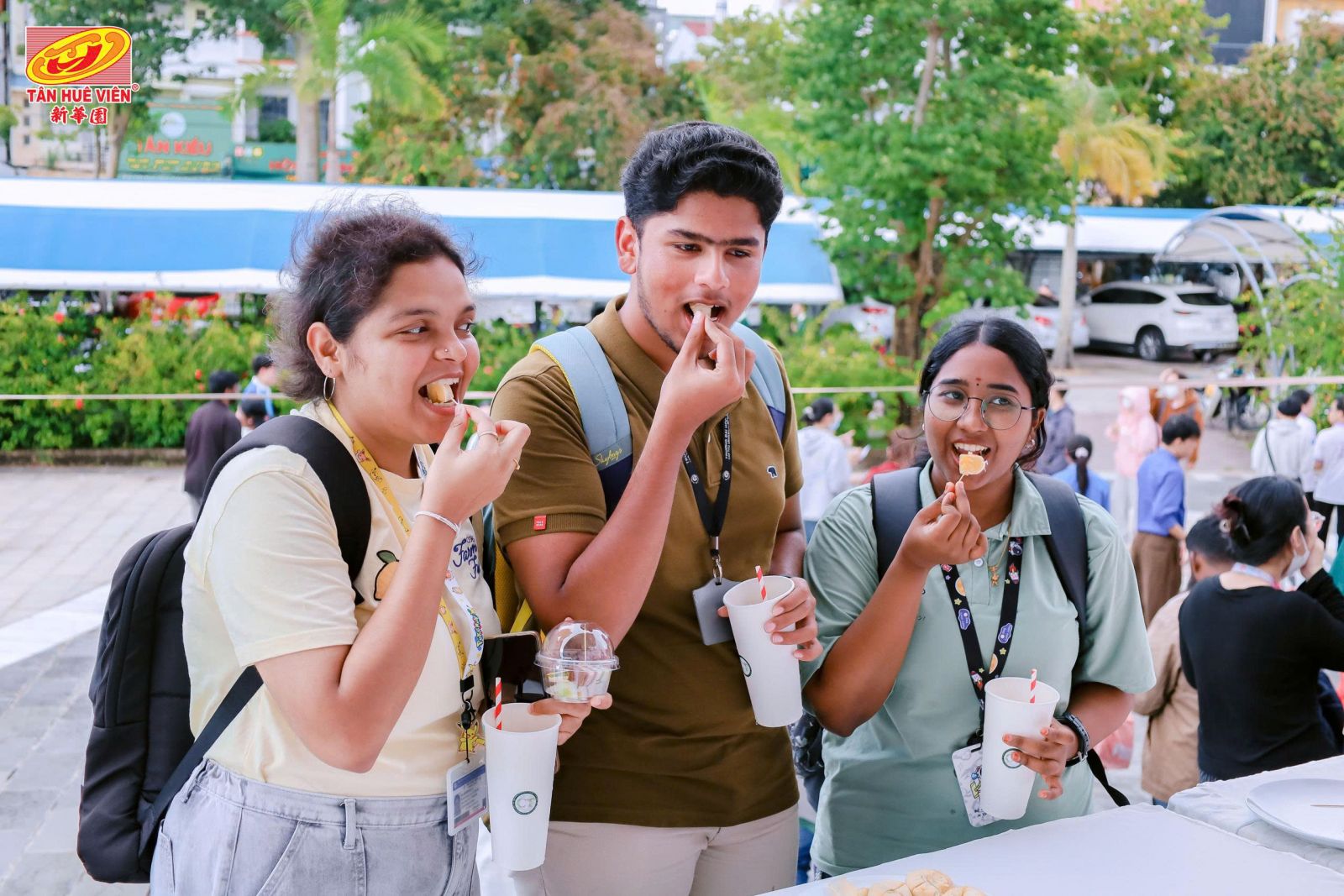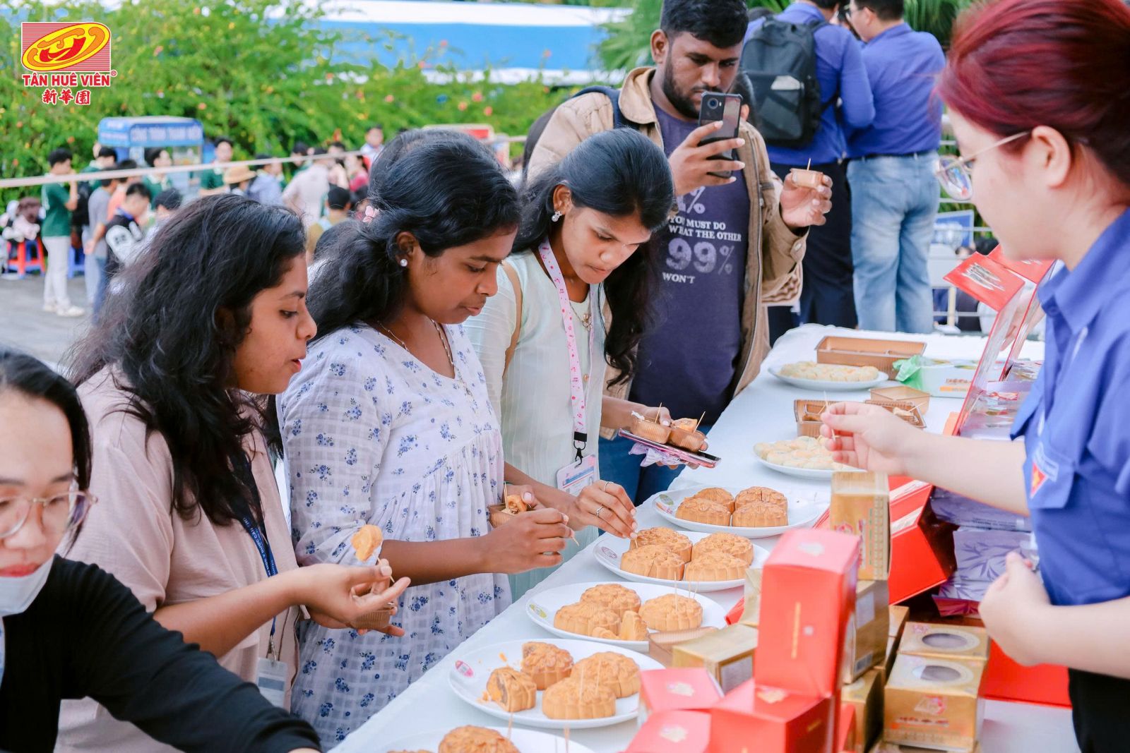 Đặc biệt, đây còn là dịp để Tân Huê Viên giới thiệu các sản phẩm đạt chứng nhận Halal, phù hợp với nhu cầu ẩm thực của sinh viên Ấn Độ và cộng đồng Hồi giáo. Không chỉ đơn thuần là dùng thử, các bạn còn được khám phá nét tinh hoa ẩm thực Việt Nam trong từng chiếc bánh, vừa truyền thống, vừa hiện đại.