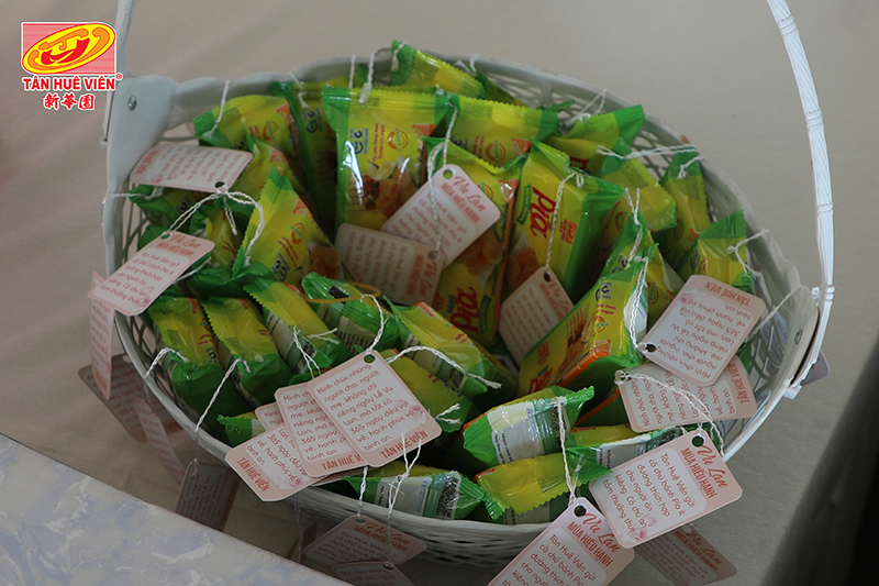 Tất cả khách hàng từ 40 tuổi trở lên khi tham quan Tân Huê Viên trong hai ngày 14 và 15/7 AL (tức là 01 và 02/9 dương lịch) được tặng bánh Pía ít đường thơm ngon cùng với lời chúc thắm thiết từ Tân Huê Viên.