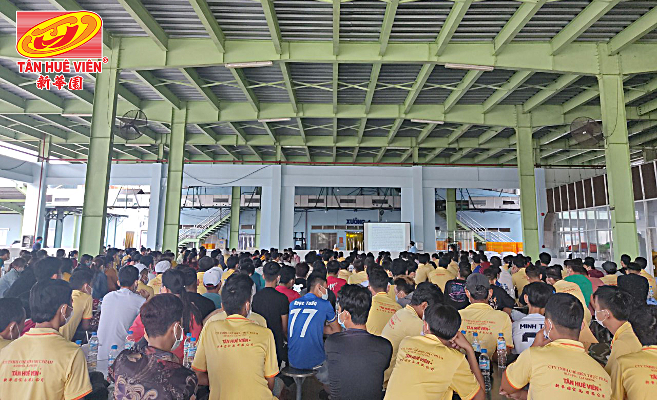 Tập thể công nhân viên công ty Tân Huê Viên tham gia khóa tập huấn về vệ sinh an toàn lao động (Ảnh: Tân Huê Viên)