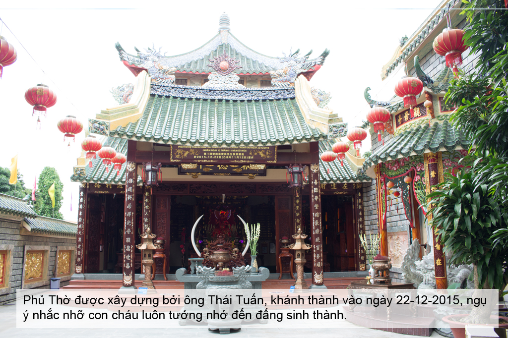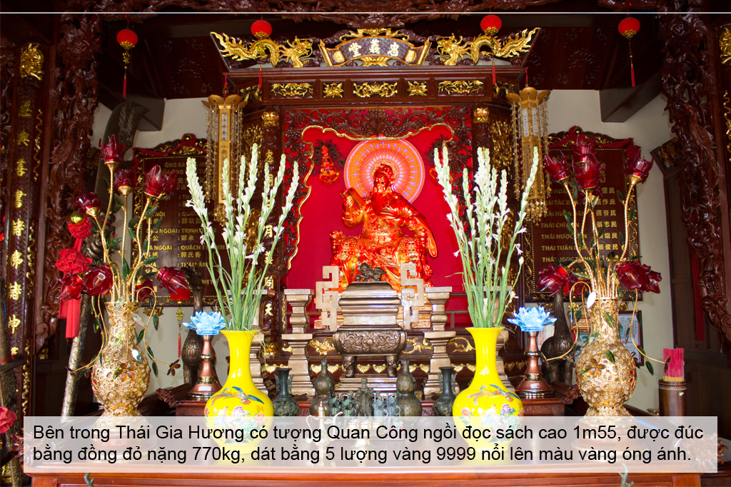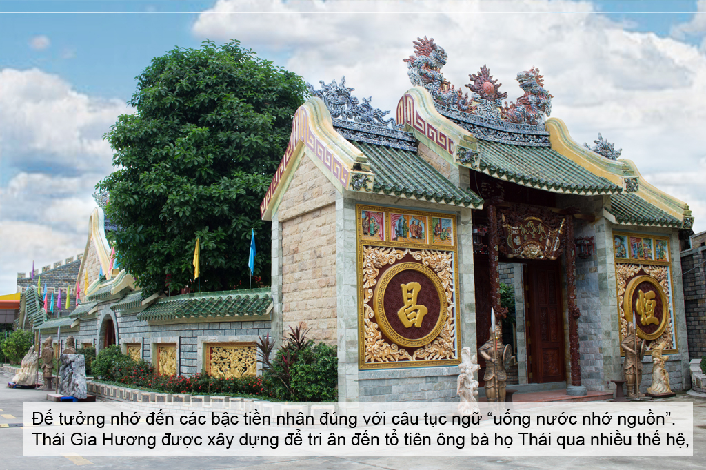 Để tưởng nhớ đến các bậc tiền nhân đúng với câu tục ngữ “uống nước nhớ nguồn”. Thái Gia Hương được xây dựng để tri ân đến tổ tiên ông bà họ Thái qua nhiều thế hệ Phủ Thời được xây dựng bởi ông Thái Tuấn, khánh thành vào ngày 22-12-2015 với lối kiến trúc đặc trưng của người Hoa. Trong Thái Gia Hương có tượng Quan Công ngồi đọc sách cao 1m55, được đúc bằng đồng đỏ nặng 770kg, dát bằng 5 lượng vàng 9999 nổi lên màu vàng óng ánh. Cùng với tượng phật Quán Âm được tạc bằng đá nguyên khối nặng 670kg, du khách có thể vào tham quan chiêm bái và ghi ảnh lưu niệm.
