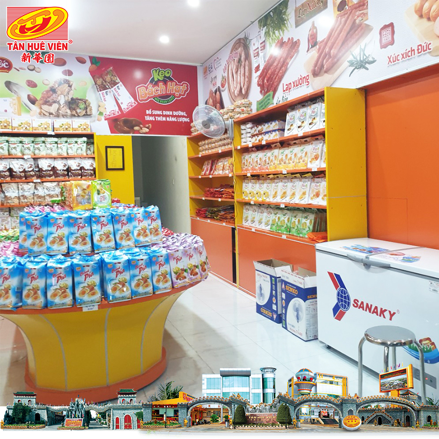 Đại lý Tân Huê Viên tọa lạc tại địa chỉ 180 Nguyễn Trung Trực, khu phố 5, phường Dương Đông, thành phố Phú Quốc, tỉnh Kiên Giang. Nằm trên tuyến sầm uất tại thành phố đảo Phú Quốc, cửa hàng sẽ mang đến cho Quý khách hàng những sản phẩm bánh kẹo, lạp xưởng thơm ngon, hấp dẫn, đặc biệt là bánh Pía - đặc sản trứ danh của Sóc Trăng từ lâu.