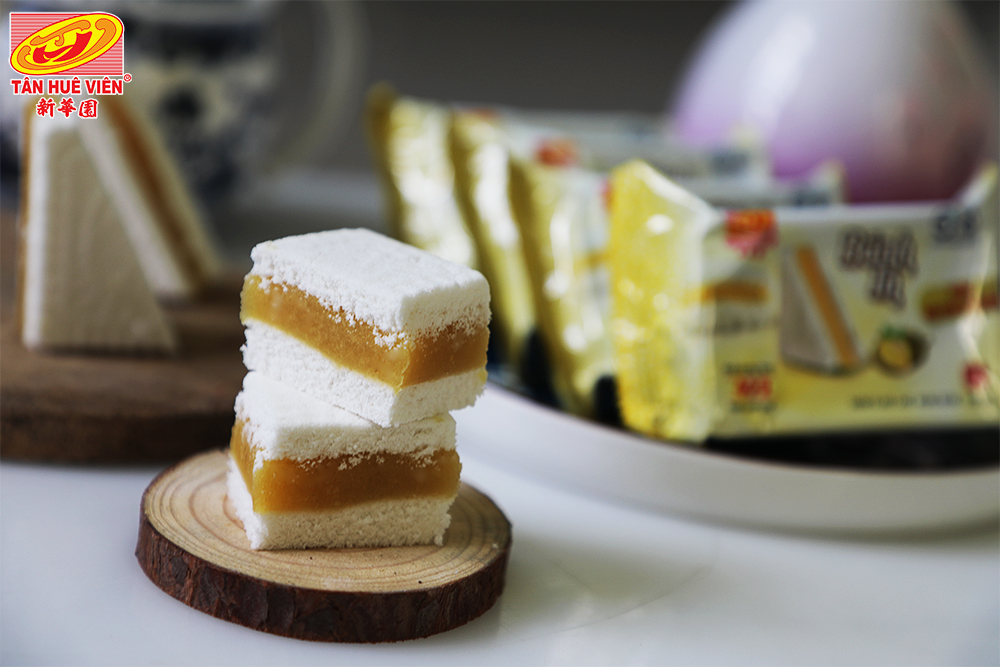 Bánh In Nhân Đậu Xanh Sầu Riêng được biến tấu từ loại bánh in truyền thống nhằm giúp cho người tiêu dùng có nhiều sự lựa chọn. Với hai lớp bánh in kẹp nhân đậu xanh ở giữa cùng hương thơm của sầu riêng, là món bánh bạn không thể bỏ qua khi dùng sản phẩm của Tân Huê Viên.