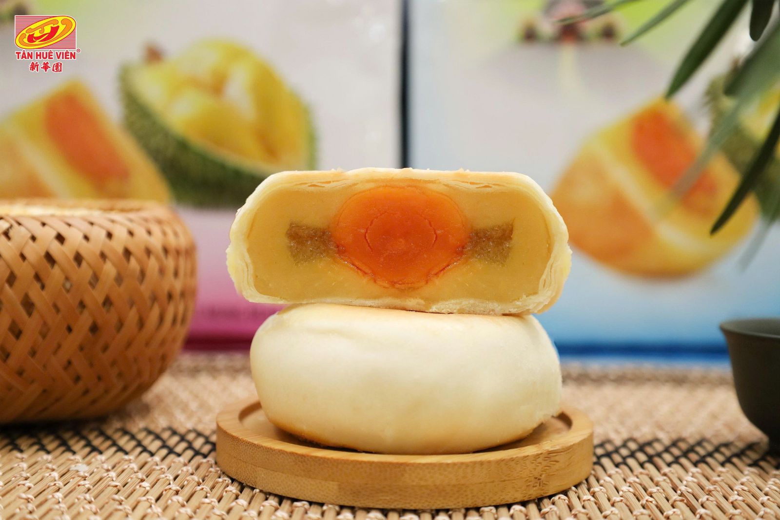 Bánh Pía đậu xanh sầu riêng trứng muối với diện mạo mới hiện đã có mặt tại tất cả cửa hàng và đại lý của Tân Huê Viên.