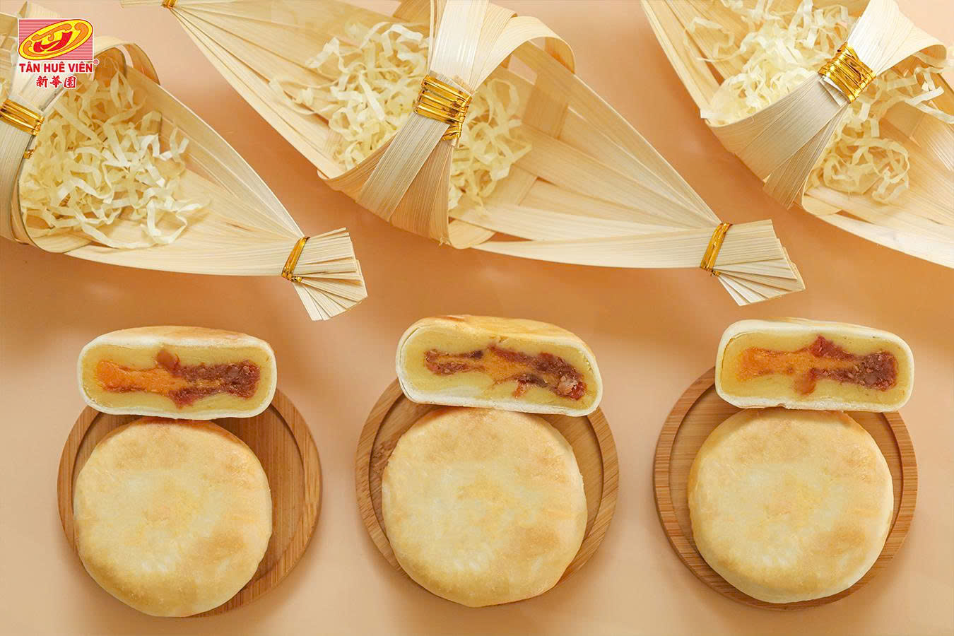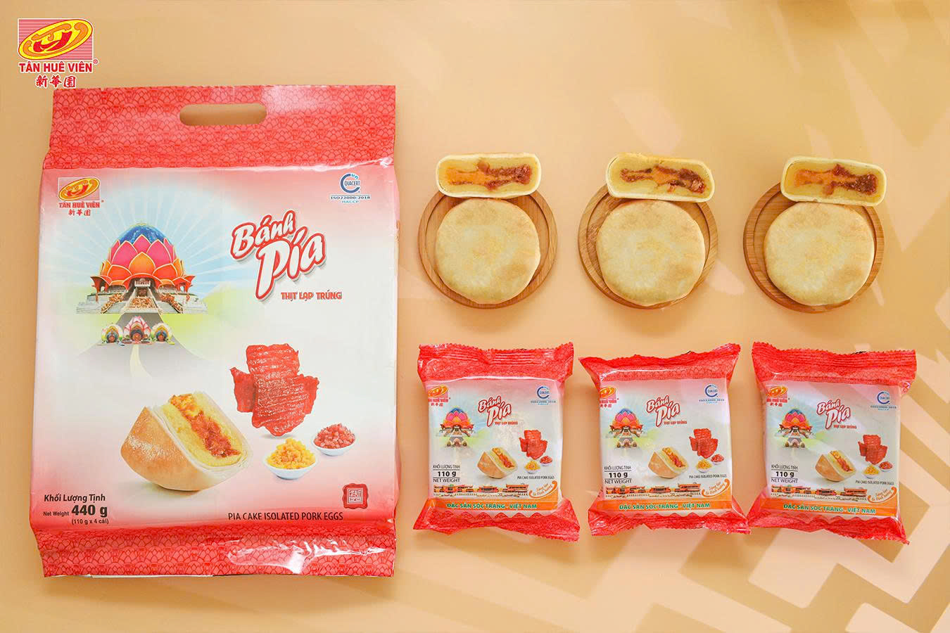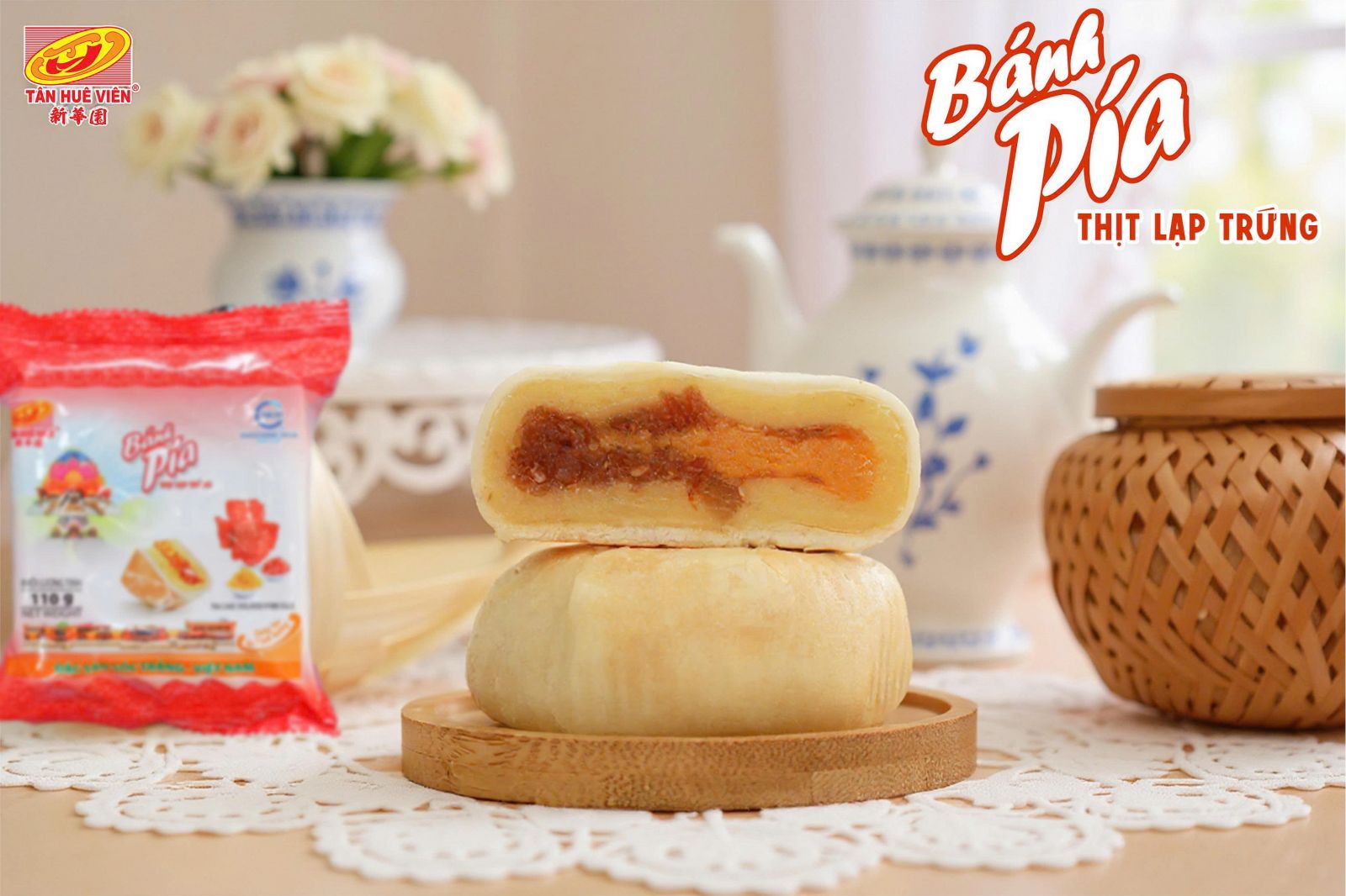Và nay, để mang đến cho khách hàng trải nghiệm mới mẻ hơn, Tân Huê Viên tự hào giới thiệu dòng sản phẩm Bánh Pía Thịt Lạp Trứng Muối với sự kết hợp hoàn hảo giữa nhân thịt lạp mặn mà và trứng muối béo bùi. Lòng đỏ trứng muối vàng óng tạo điểm nhấn vừa tinh tế, vừa đậm đà, nâng hương vị quen thuộc lên một tầm cao mới.