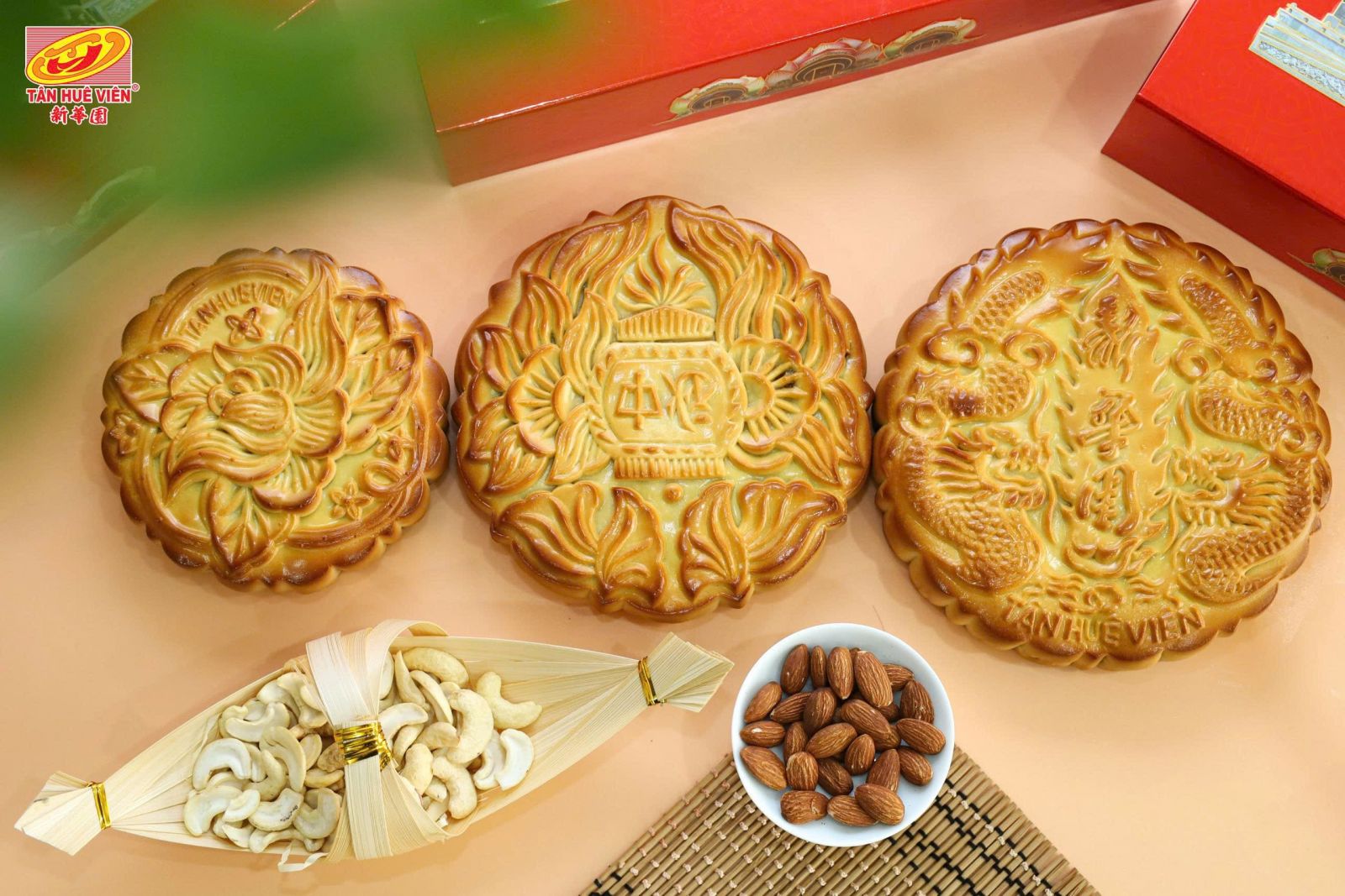 Ngoài những chiếc bánh nhỏ, Tân Huê Viên còn cho ra đời những chiếc bánh trung thu có kích thước lớn, mang đến cho khách hàng đa dạng sự lựa chọn khi mua bánh trung thu tặng cho người thân. Những loại bánh có kích thước lớn gồm 03 loại là vi cá, gà quay và thập cẩm (còn gọi là Jambon) gồm hai đến bốn lòng đỏ trứng muối bên trong rất thơm ngon.