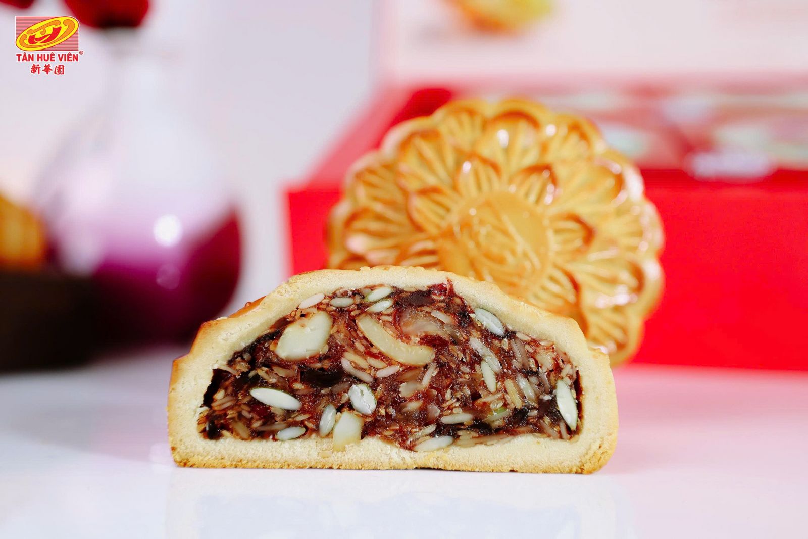 Bánh trung thu nhân thập cẩm Tân Huê Viên - người ăn chay hoàn toàn dùng được bánh thập cẩm hương vị thơm ngon đậm đà truyền thống.