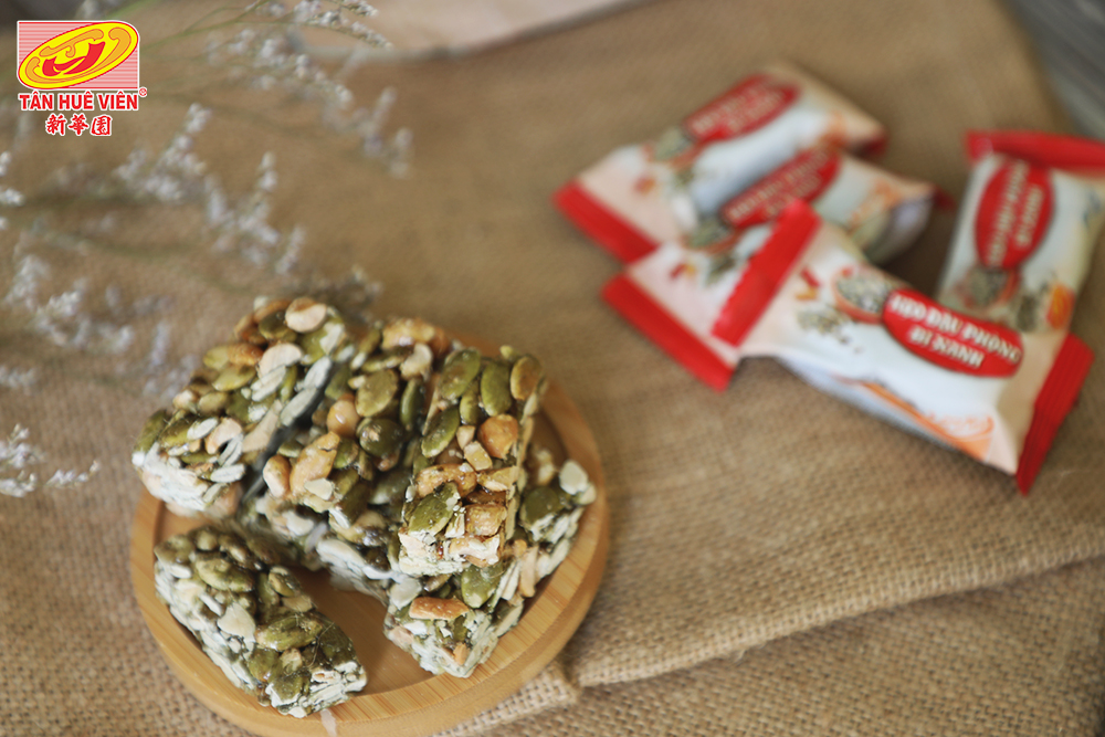 Kẹo đậu phộng, món quà quê ngọt ngào, thơm hương đồng nội là món kẹo được mọi người đặc biệt ưa chuộng. Nay Kko đậu phộng truyền thống được Tân Huê Viên bổ sung thêm một hương vị mới vừa thơm ngon, bổ dưỡng với hương vị của hạt bí xanh.