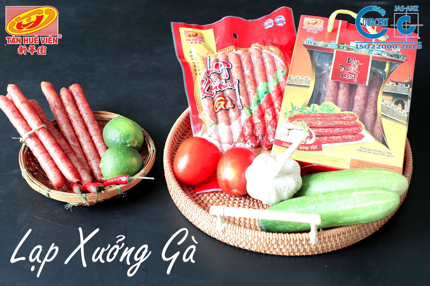 Lạp xưởng gà của Tân Huê Viên được làm chủ yếu từ thịt gà thả vườn tươi ngon kết hợp cùng với hương thơm tự nhiên của rượu Mai Quế Lộ tạo nên một món lạp xưởng tươi thơm ngon. Tân Huê Viên tin rằng, bạn sẽ không thể nào quên được hương vị của nó ngay khi lần đầu nếm thử.